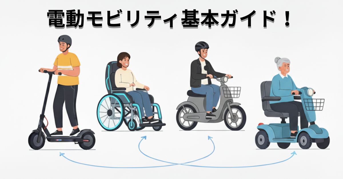 電動マイクロモビリティ(電動キックボード、電動車いす、電動カートなど)のタイプ別の特徴とオススメのモデルを紹介します。